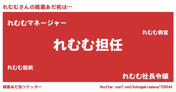 | ヘコむあだ名 | 『れむむ(苦笑)』『れむにー』 |