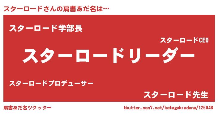 | ヘコむあだ名 | 『スタっちょ』『スターロード(遠い目)』 |