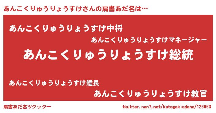 | 女子向けラノベタイトル風あだ名 | 『あんこくりゅうりょうすけアンティーク』 |