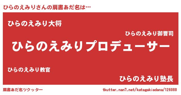 | ヒーロー風カッコイイあだ名 | 『天弓騎士ヒラ』『スーパーヒラノエミリ』 |