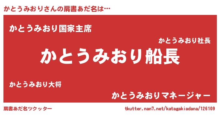 | 意味不明あだ名 | 『かとうみおりフォーエバー』 |