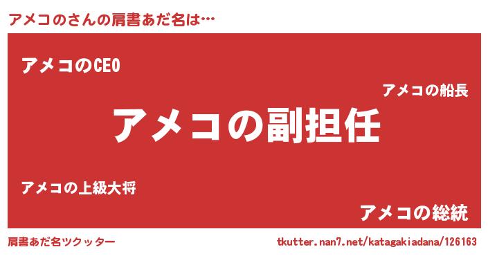 | ヘコむあだ名 | 『アメコの(震え声)』『アメふぇ~』 |