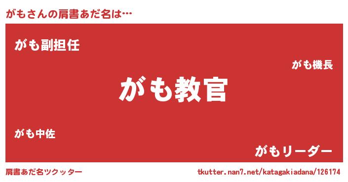 | ヘコむあだ名 | 『がも(笑)』『がもぷりん』『つくし』 |
