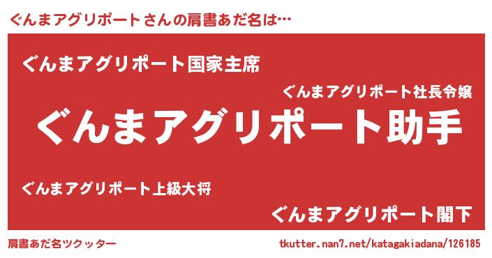 | ヒーロー風カッコイイあだ名 | 『慈愛の使者ぐんまアグリポート』 |