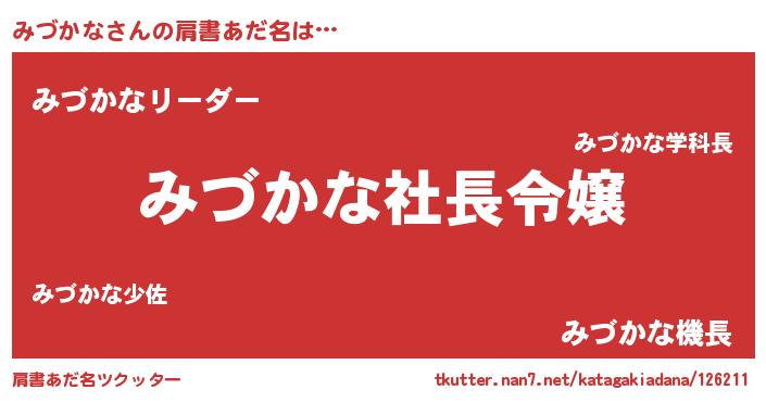 | ヒーロー風カッコイイあだ名 | 『スーパーミヅカナ』『銀牙騎士ミヅ』 |