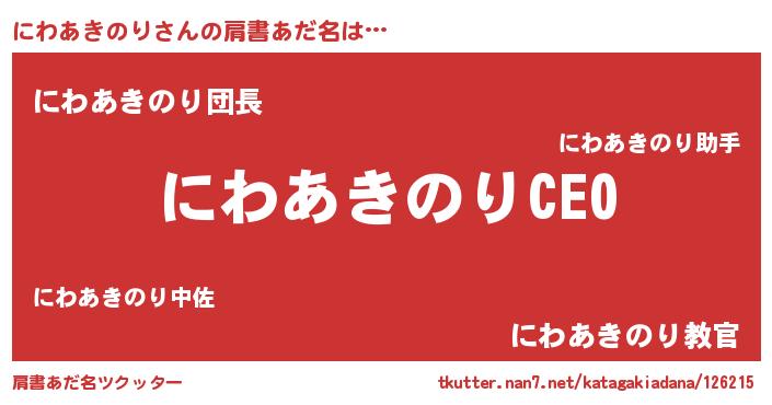 | ヒーロー風カッコイイあだ名 | 『スーパーニワアキノリ』『暗黒騎士ニワ』 |