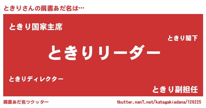 | ヘコむあだ名 | 『ときぷりん』『豆乳』『ときにー』 |