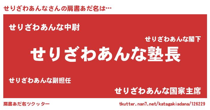 | 意味不明あだ名 | 『とにかく怪しいせりざわあんな』 |