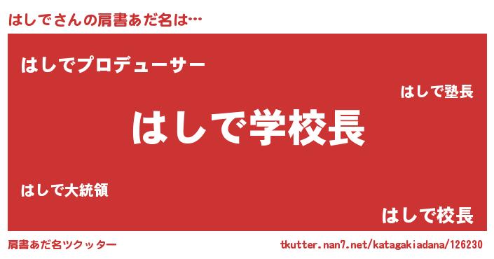 | ヒーロー風カッコイイあだ名 | 『慈愛の使者はしで』『ネオハシデ』 |