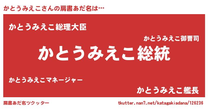 | 意味不明あだ名 | 『自称かとうみえこ』 |