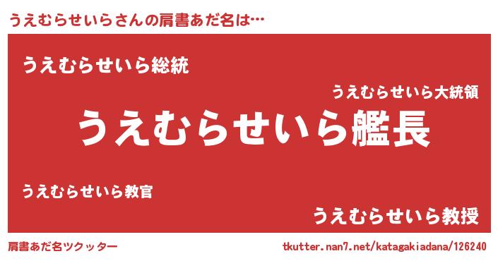 | ヒーロー風カッコイイあだ名 | 『究極戦士ウエムラセイラ』 |