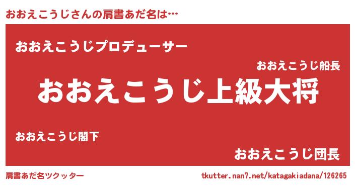 | 男性向けラノベタイトル風あだ名 | 『おおえこうじ~年齢イコール彼女いない歴の魔法使い~』 |