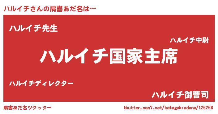 | 意味不明あだ名 | 『ハルイチフォーエバー』 |