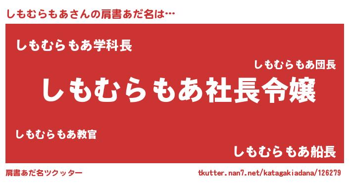 | 胡散臭い通販商品みたいなあだ名 | 『億万長者になれる霊験あらたかなお札…その名も「しもむらもあ」』 |