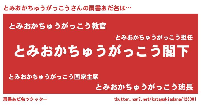 | 男性向けラノベタイトル風あだ名 | 『魔法科高校のとみおかちゅうがっこう』 |