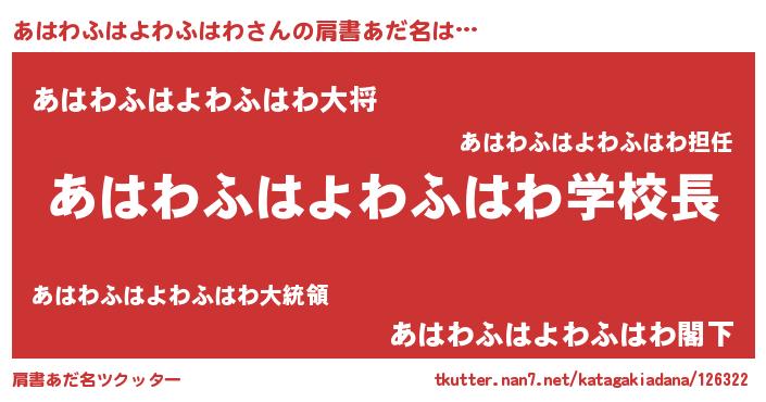 | 男性向けラノベタイトル風あだ名 | 『ノーゲーム・ノーアハワフハヨワフハワ』 |