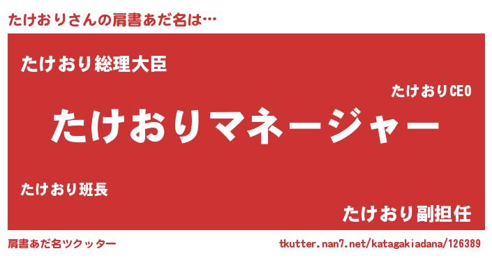 | ファンタジー風あだ名 | 『エターナルタケオリー』『タケフェル』 |