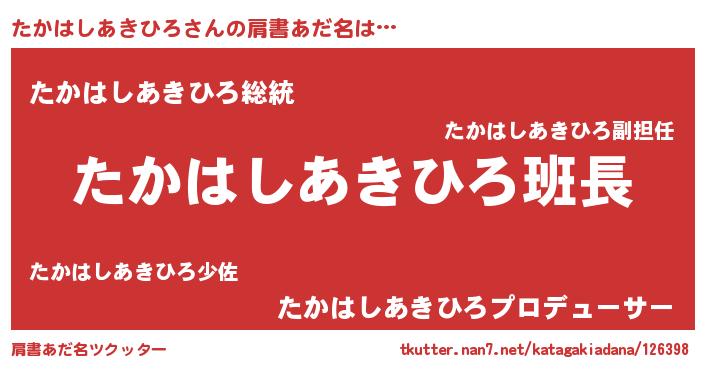 | 意味不明あだ名 | 『とにかく怪しいたかはしあきひろ』 |