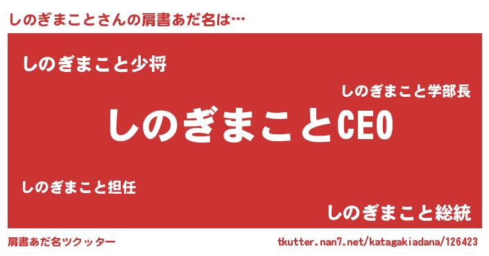 | 男性向けラノベタイトル風あだ名 | 『シノギマコトアートオンライン』 |