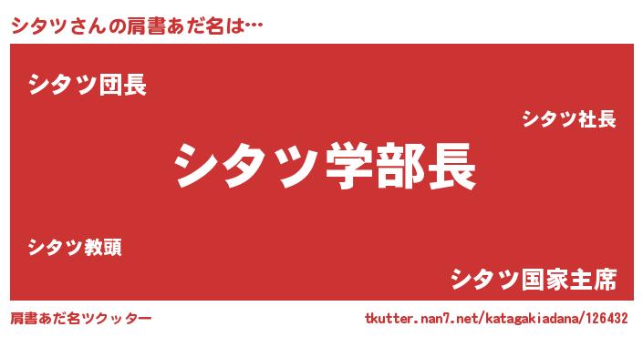 | ヒーロー風カッコイイあだ名 | 『慈愛の使者シタツ』『暗黒騎士シタ』 |