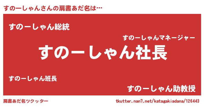 | 男性向けラノベタイトル風あだ名 | 『すのーしゃんの憂鬱』 |