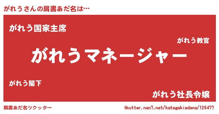 | ヒーロー風カッコイイあだ名 | 『ウルトラがれうマン』『スーパーガレウ』 |