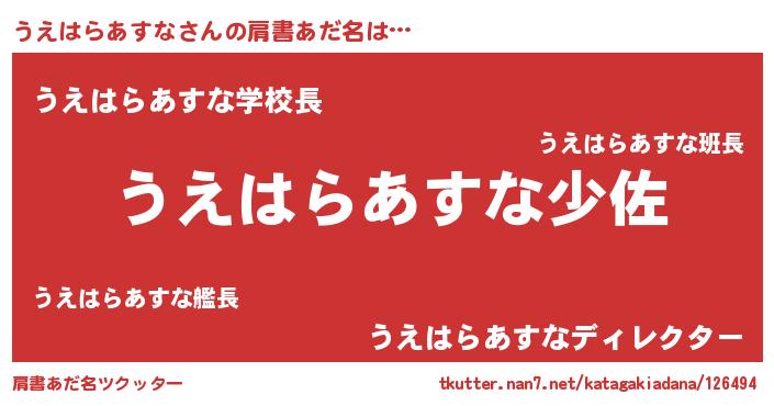 | ヘコむあだ名 | 『うえお』『うえはらあすな(爆)』 |