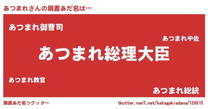 | 恥ずかしいあだ名 | 『あつっちょ』『プリティーあつまれ』 |