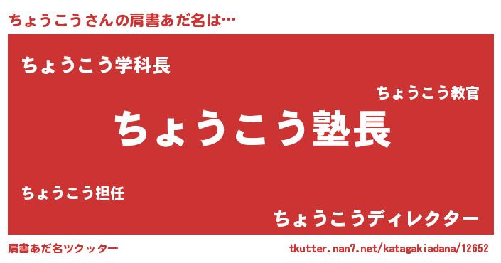 | 意味不明あだ名 | 『とにかく怪しいちょうこう』 |