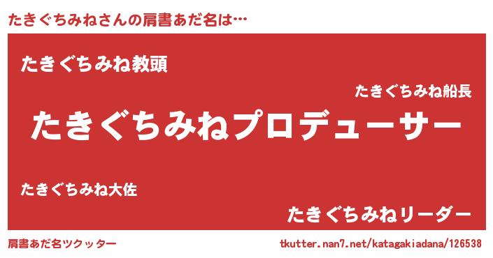 | 意味不明あだ名 | 『永久保存たきぐちみね』 |
