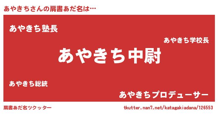 | ポケモン風あだ名 | 『アヤキング』『ヒアヤキチ』 |