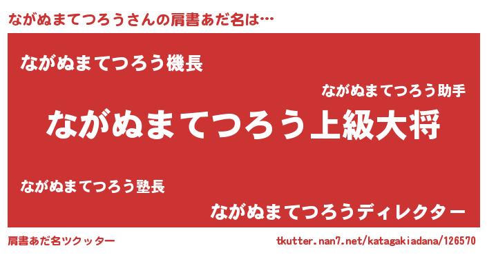 | 男性向けラノベタイトル風あだ名 | 『ナガヌマテツロウスレイヤー』 |