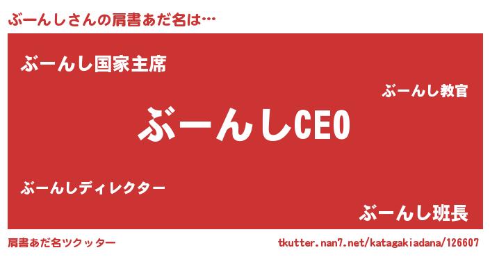 | ポケモン風あだ名 | 『ブーチュウ』『ブーンダネ』 |