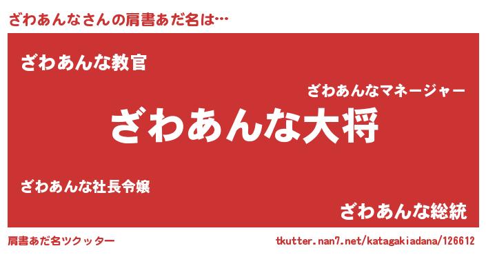 | 伝説のあだ名 | 『伝説のスナイパーざわあんな』 |