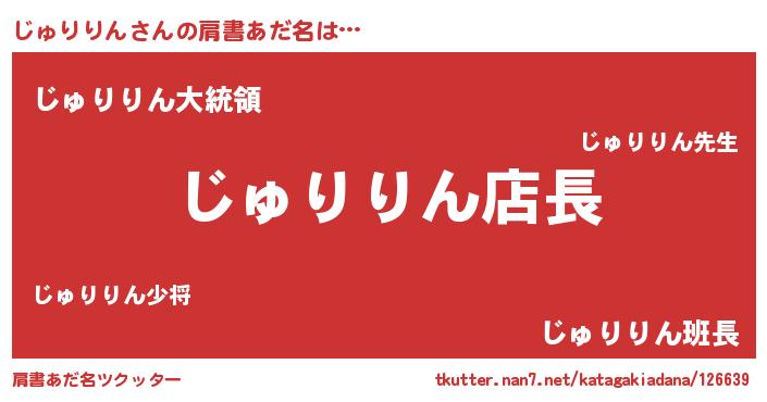 | ポケモン風あだ名 | 『ジュチュウ』『ジュリダネ』 |