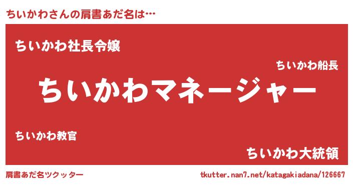 | ヒーロー風カッコイイあだ名 | 『スーパーチイカワ』『仮面チイダー』 |