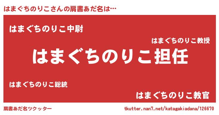 | 男性向けラノベタイトル風あだ名 | 『誰もが恐れるあのはまぐちのりこが、ぼくの専属メイドになるようです。』 |