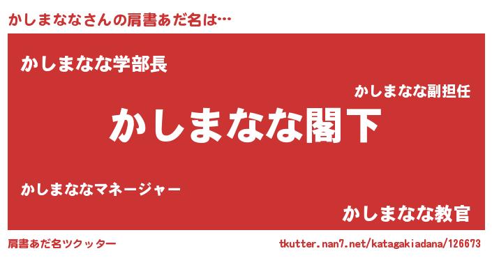 | 男性向けラノベタイトル風あだ名 | 『魔法科高校のかしまなな』 |