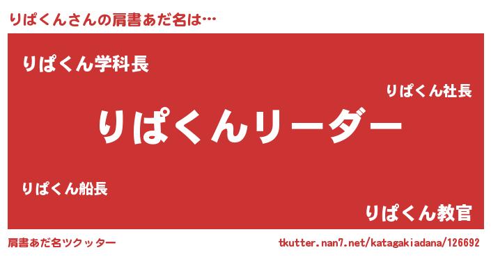 | 男性向けラノベタイトル風あだ名 | 『ダンジョンにりぱくんを求めるのは間違っているだろうか』 |