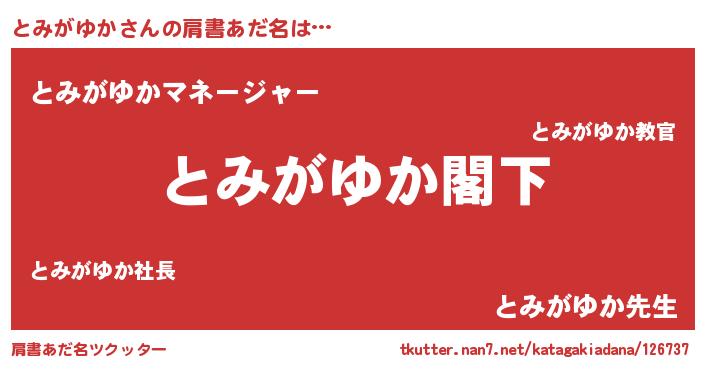 | 意味不明あだ名 | 『自称とみがゆか』『永久保存とみがゆか』 |