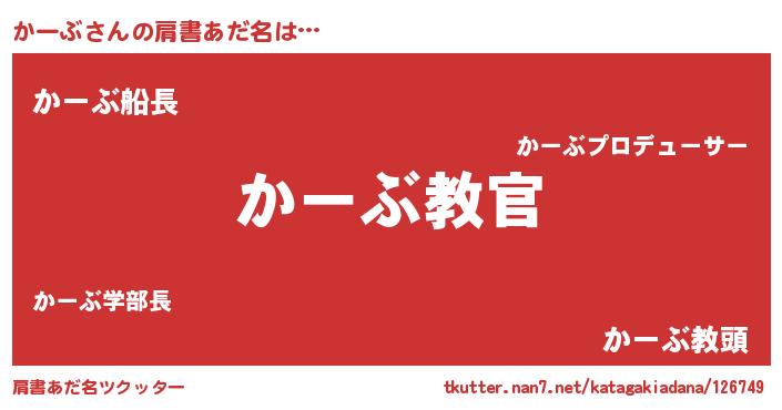 | 男性向けラノベタイトル風あだ名 | 『この素晴らしい世界にかーぶを!』 |