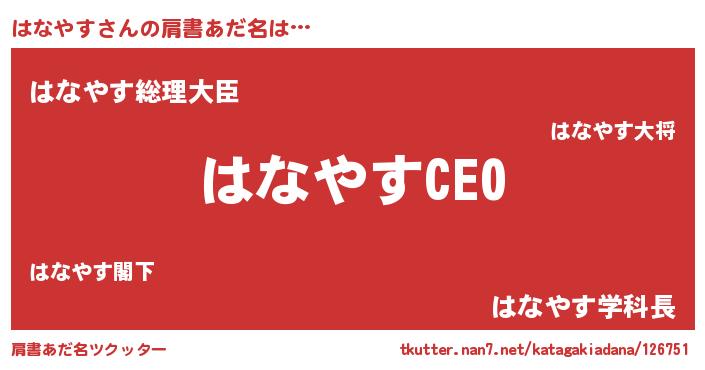 | ファンタジー風あだ名 | 『ハナフェル』『エターナルハナヤスー』 |