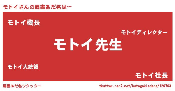 | ヘコむあだ名 | 『モトイ(笑)』『モトもー』『つくし』 |