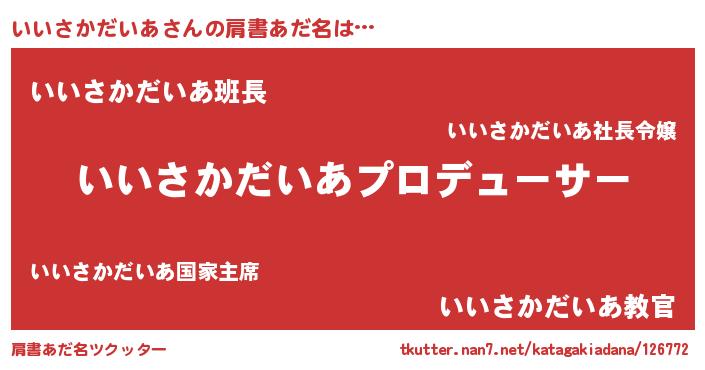 | 男性向けラノベタイトル風あだ名 | 『いいさかだいあに滅ぼされるだけの簡単なお仕事です』 |