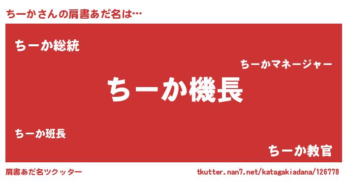 | ヘコむあだ名 | 『ちーぷりん』『ちーか(震え声)』 |