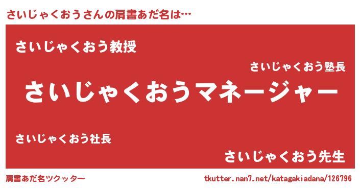 | 欧米人風あだ名 | 『アンジェラ・さいじゃくおう』 |