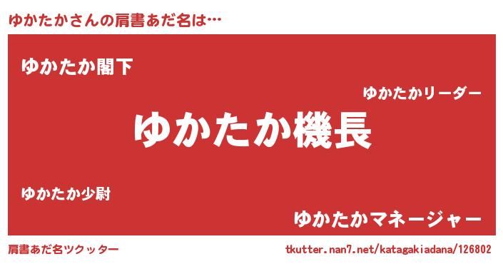 | 意味不明あだ名 | 『自称ゆかたか』『なめこ科ゆかたか属』 |