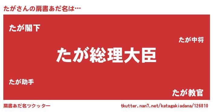 | 意味不明あだ名 | 『たがフォーエバー』『自称たが』 |