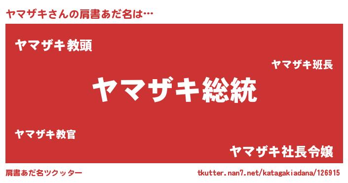 | 男性向けラノベタイトル風あだ名 | 『Re:ヤマザキから始める異世界生活』 |