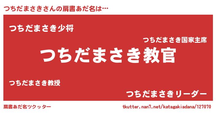 | 男性向けラノベタイトル風あだ名 | 『魔弾の王とつちだまさき』 |